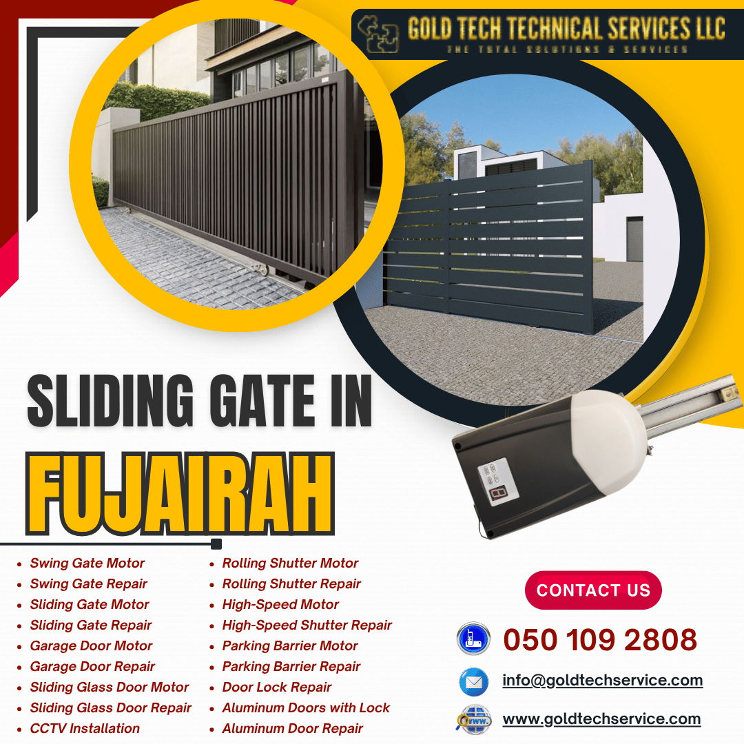 Sliding Gate in Fujairah – Get durable, automated, and stylish solutions by GOLD TECH TECHNICAL SERVICES LLC. Call