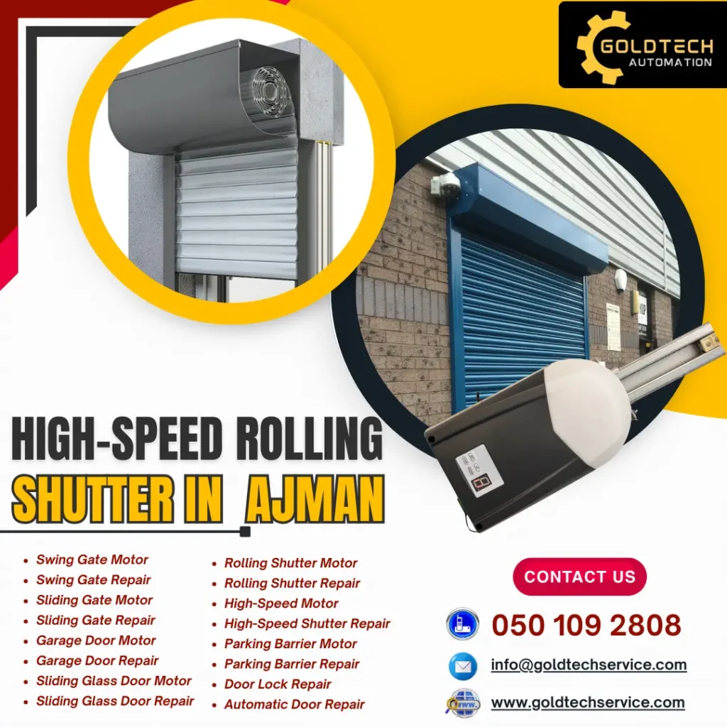 High-Speed Rolling Shutter in Ajman is becoming the top choice for property owners who want fast, secure and durable access solutions. And because Ajman is growing rapidly, many businesses now need shutters that offer not only protection but also smooth and efficient daily operation. Therefore, high-speed rolling shutters are proving to be the right fit. Moreover, when installed and maintained by a trusted expert like GOLD TECH AUTOMATIC DOOR SERVICES, they offer long-term performance with minimal issues.