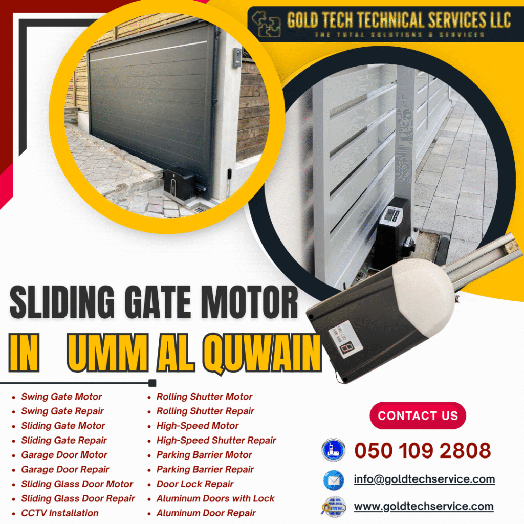 Sliding Gate Motor in Umm Al Quwain is fast becoming the go-to solution for homeowners and businesses who want secure, smooth, and automated access control. At GOLD TECH AUTOMATIC DOOR SERVICES, we specialize in state-of-the-art sliding gate motor installations, maintenance, and repair. Our commitment is to provide you with reliable performance, exceptional service, and peace of mind.