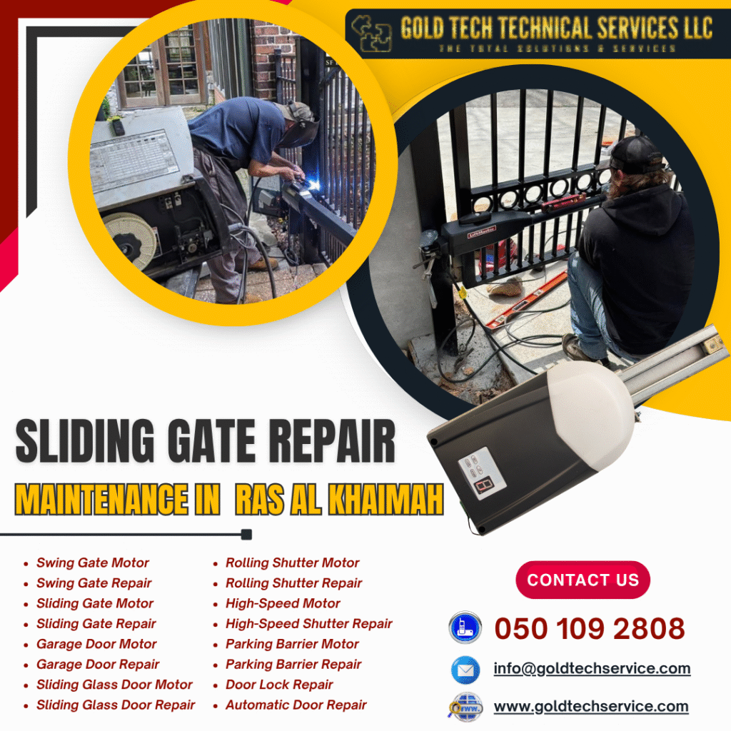 Sliding Gate Repair/Maintenance in Ras Al Khaimah is essential for ensuring smooth, safe, and long-lasting gate performance. In today’s fast-paced world, automatic gates add convenience and security to both homes and businesses. However, regular maintenance and timely repair are crucial to prevent unexpected breakdowns and ensure your property remains protected. At GOLD TECH AUTOMATIC DOOR SERVICES, we specialize in professional sliding gate solutions that keep your systems operating flawlessly across Ras Al Khaimah and all of the UAE.